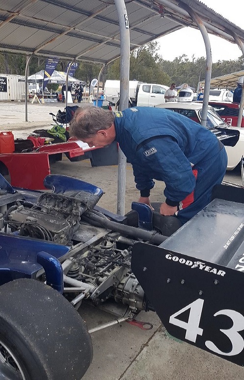 Bruce Allan attends to Brian’s Ralt RT1 prior to the start of Race 2.